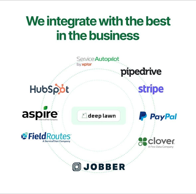 You won’t find better integrations for lawn care and pest control businesses than with Deep Lawn. Deep Lawn provides you with the ability to connect with the best integrations and seamlessly integr...